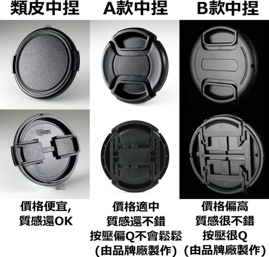 下方照片是我司所售各款鏡頭蓋的簡單比較: