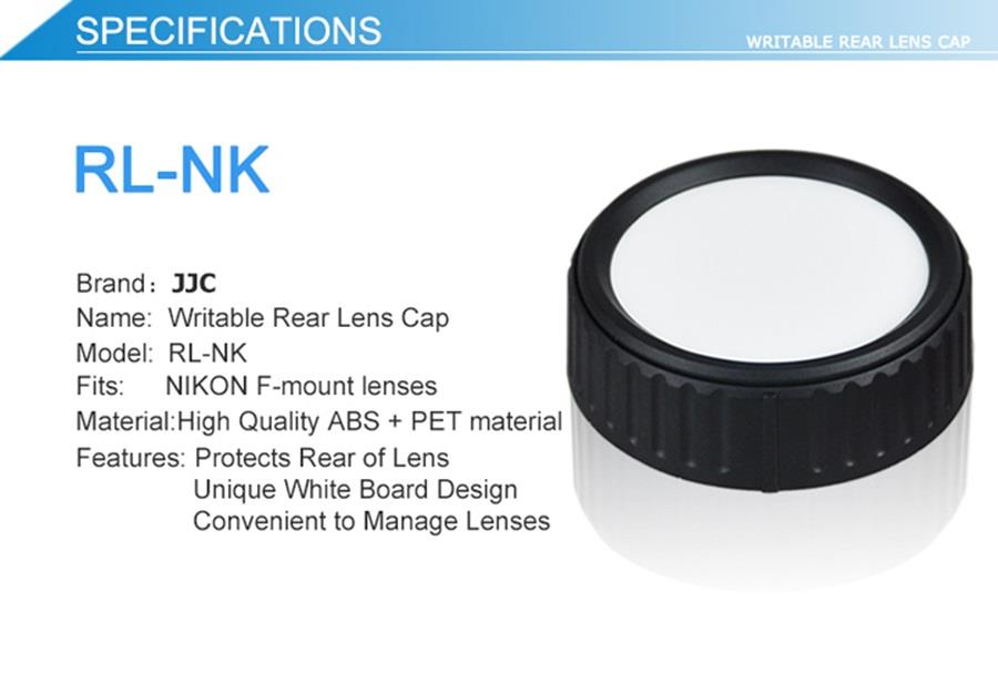 ●【品名】JJC可寫字副廠Nikon F接環鏡頭後蓋RL-NK,相容尼康原廠LF-4/LF-1鏡頭後蓋
