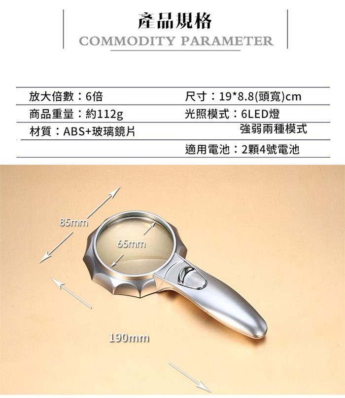 高清傘狀 LED6燈 6倍閱讀放大鏡