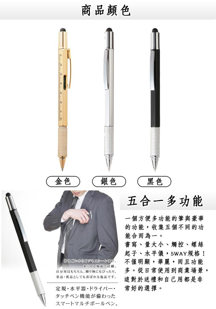 一個方便多功能的筆與豪華的功能,收集五個不同的功能合而為一。 如何,書寫、量大小、觸控、螺絲起子、水平儀,5WAY規格!不僅明顯,華麗,而且功能超多。從日常使用到商業場景,與每一個活躍場景!這對於送禮和自己用都是非常好的選擇。'