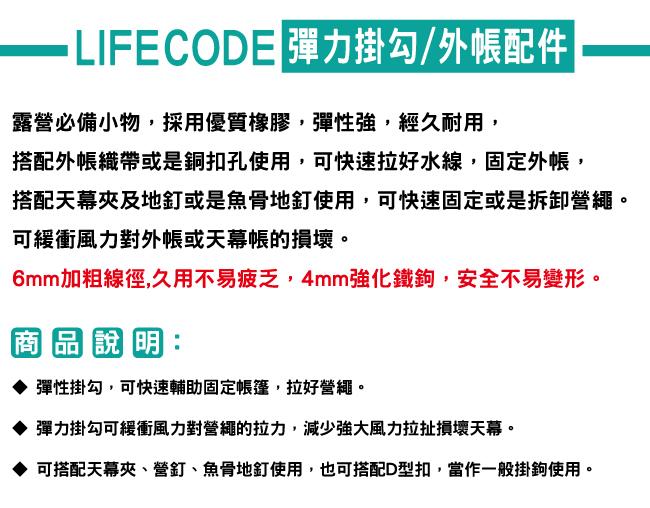 ◆ 彈性掛勾,可快速輔助固定帳篷,拉好營繩。