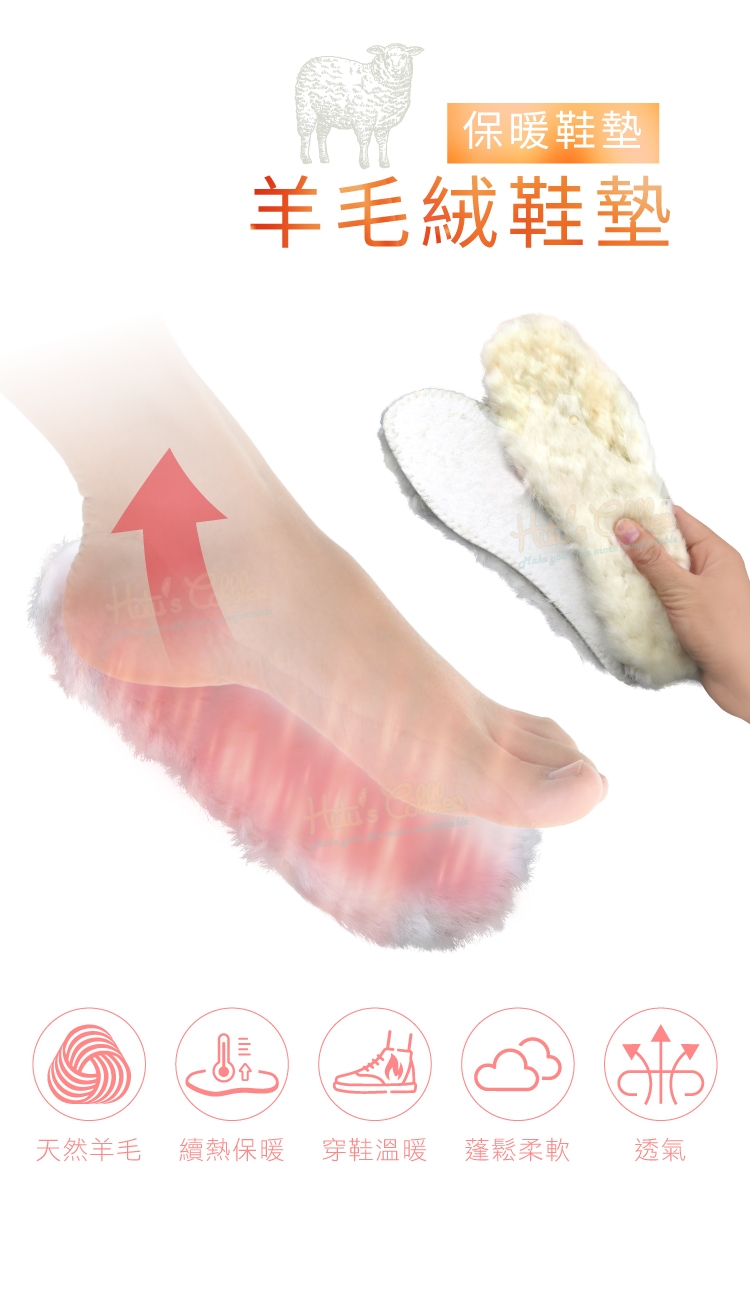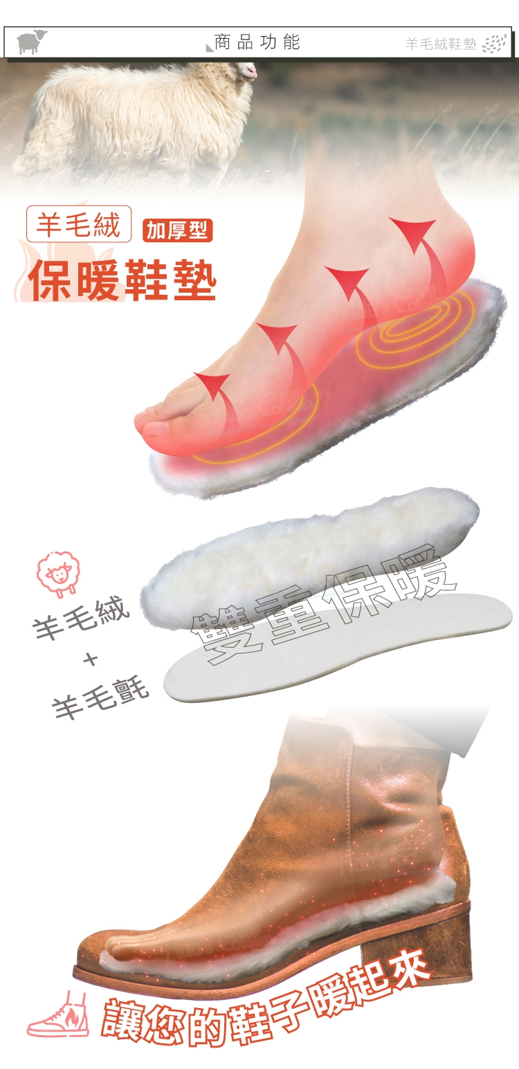 將羊毛絨鞋墊置於原本鞋墊上方即可