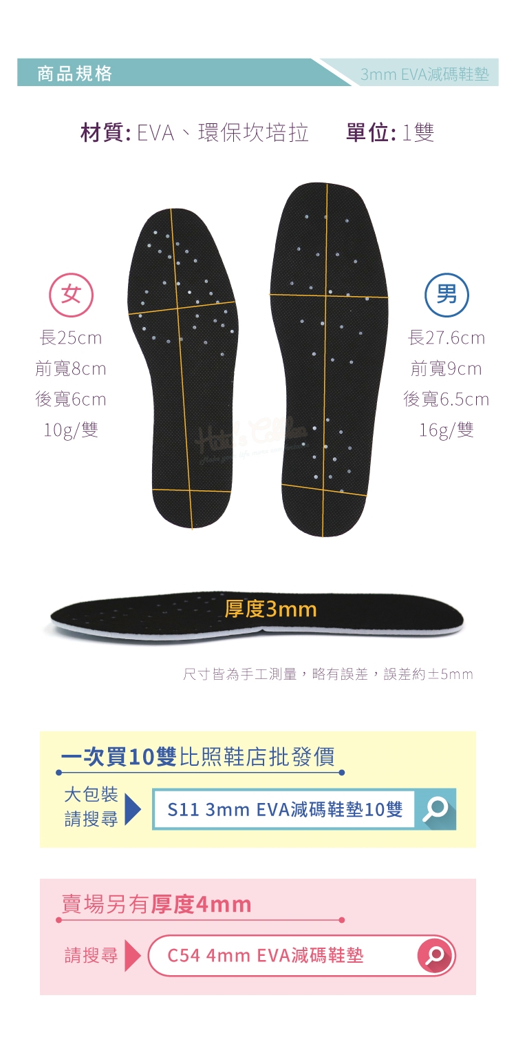 大包裝請搜尋:S11 3mm EVA減碼鞋墊10雙