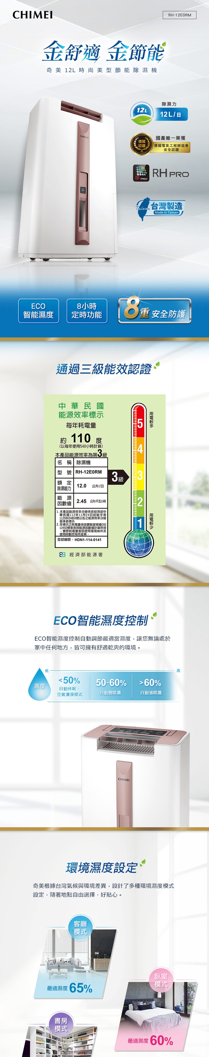 ◆三種環境濕度模式設定,人體舒適/低濕乾燥/快速乾衣,可隨地點自由選擇