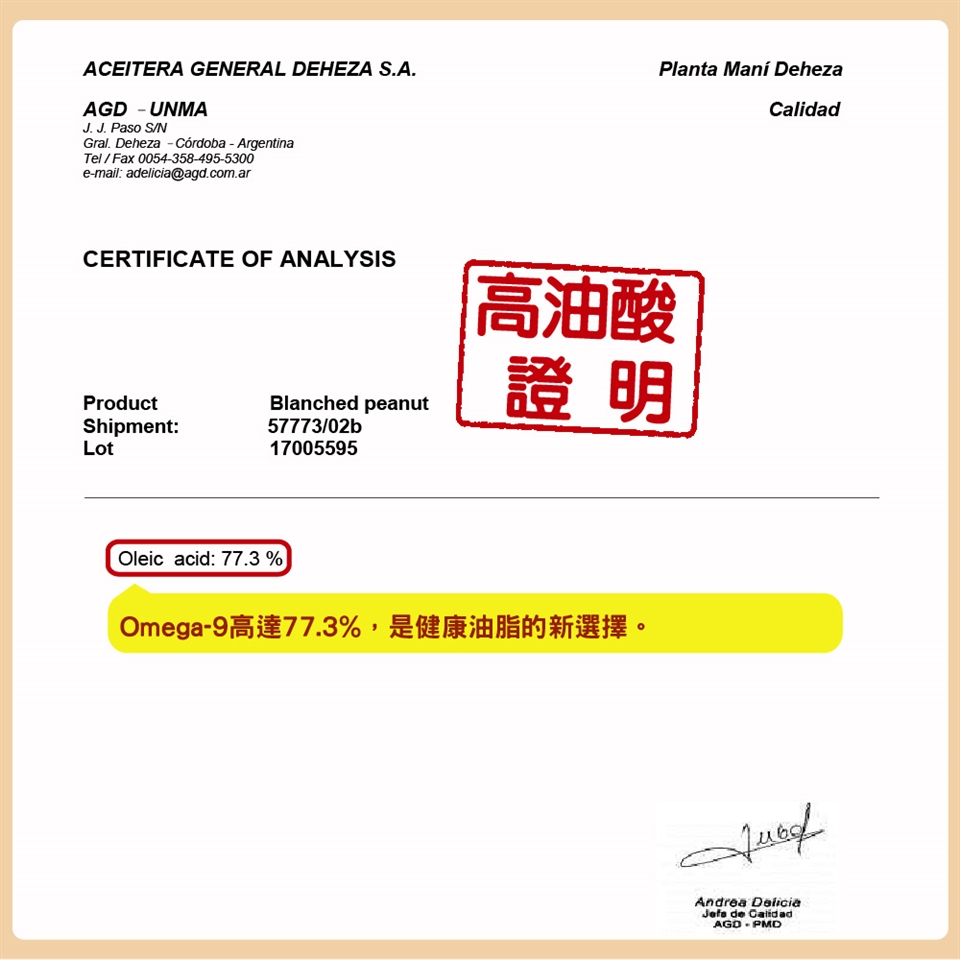 台灣進口的花生醬,有47.48%從中國進口,自經區政策開放,中國便宜花生製作花生醬掛MIT比比皆是品質堪慮。本產品採用澳洲和紐西蘭產高油酸花生,紐西蘭當地生產包裝,原裝原瓶進口。