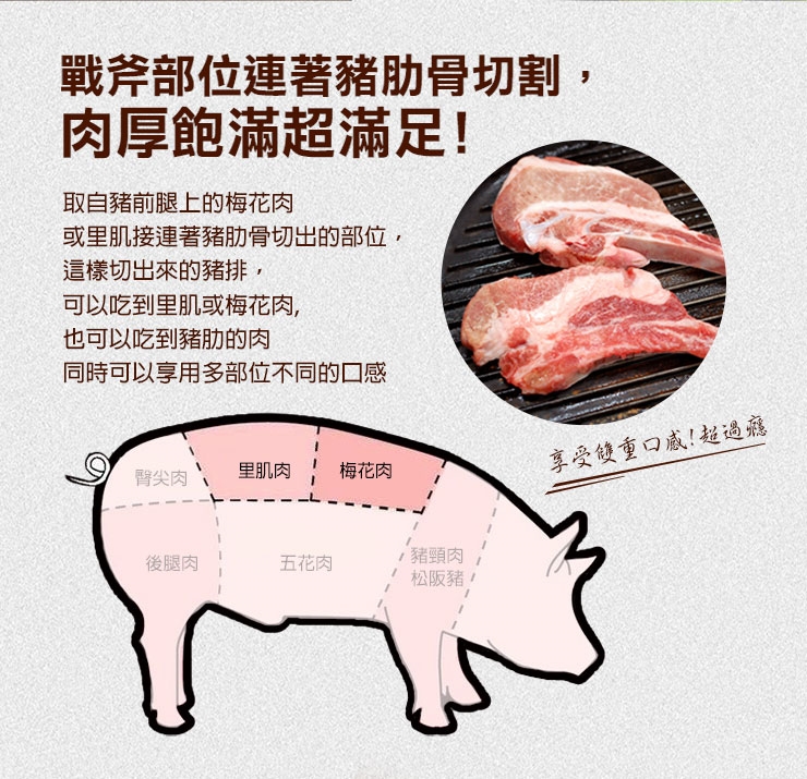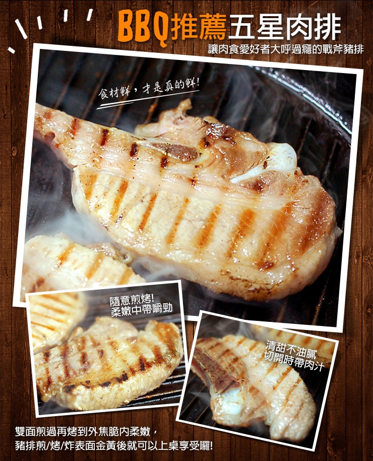 雙面煎過再烤到外焦脆內柔嫩,豬排煎/烤/炸表面金黃後就可以上桌享受囉!
