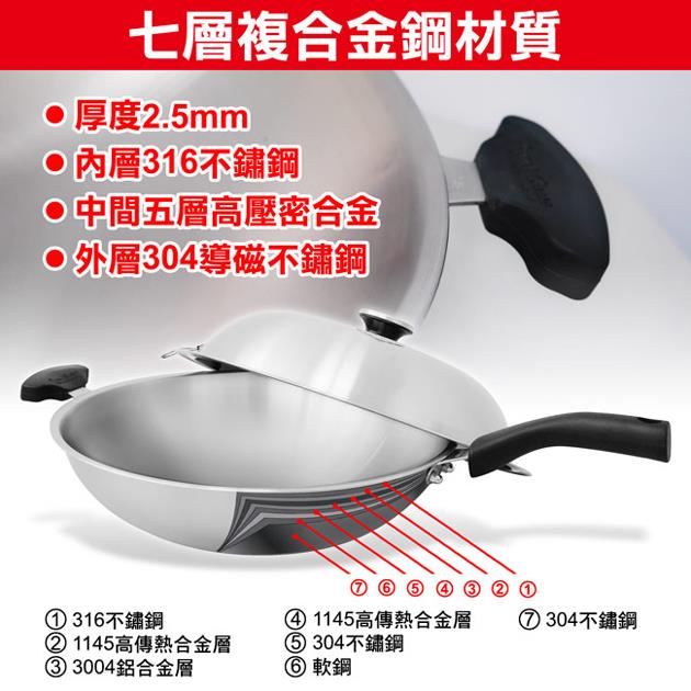 ◎七層複合金鋼材、導熱均勻、儲溫性佳,不僅可當成煎炒鍋、油炸鍋、炒鍋、蒸籠使用,更可當成火鍋使用的最佳理想鍋具