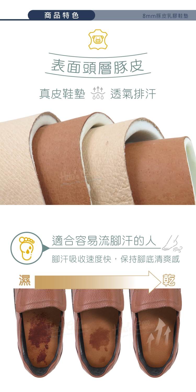 表面頭層豚皮:真皮鞋墊,透氣排汗