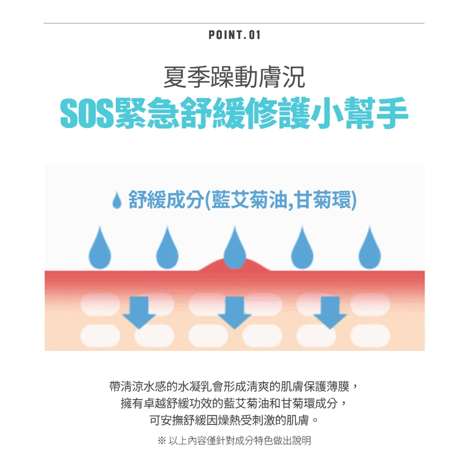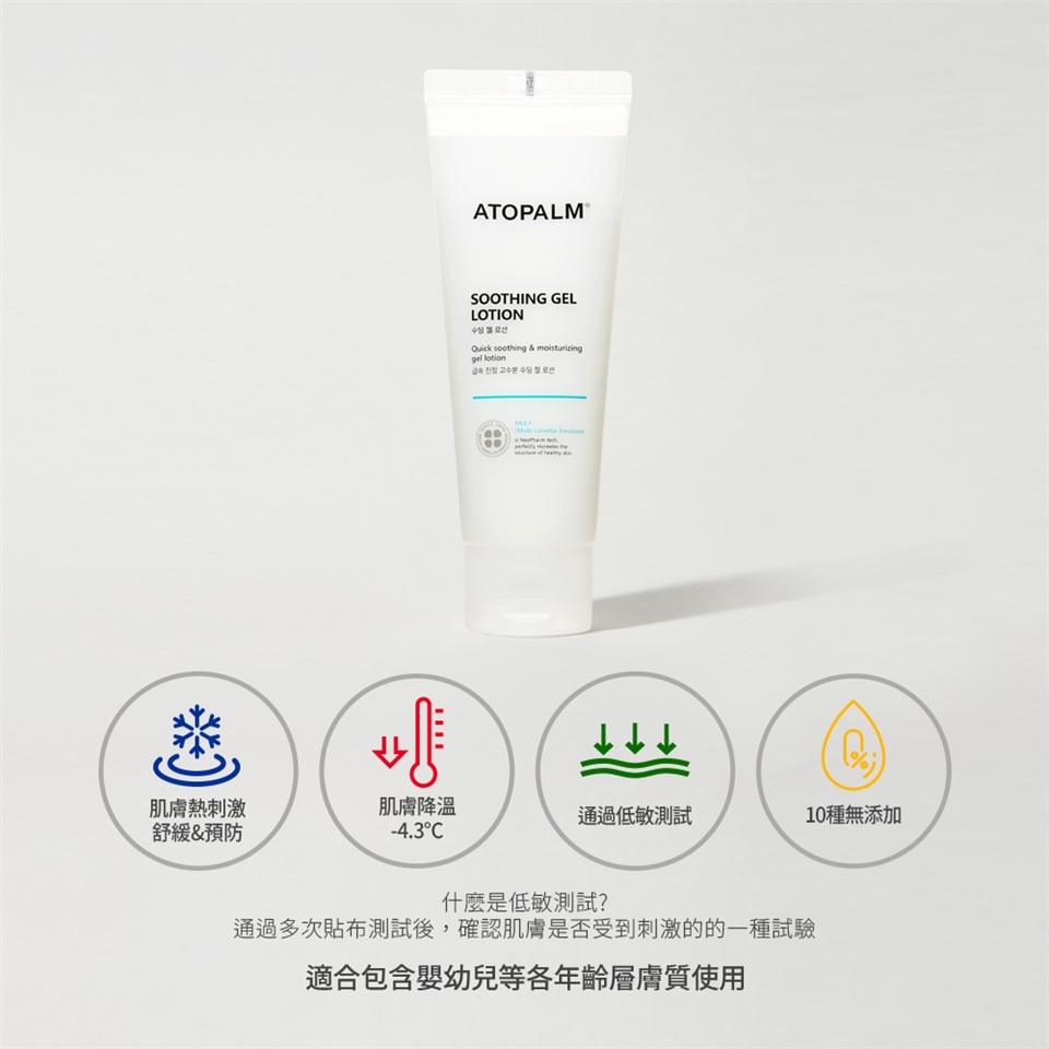 舒緩小寶貝肌膚的曬後不適。冰涼涼後使用更舒服!洋甘菊和槲寄生萃取,搭配清爽的凝膠劑型與MLE®專利肌膚屏障技術,供應肌膚水分及維持長效保濕。