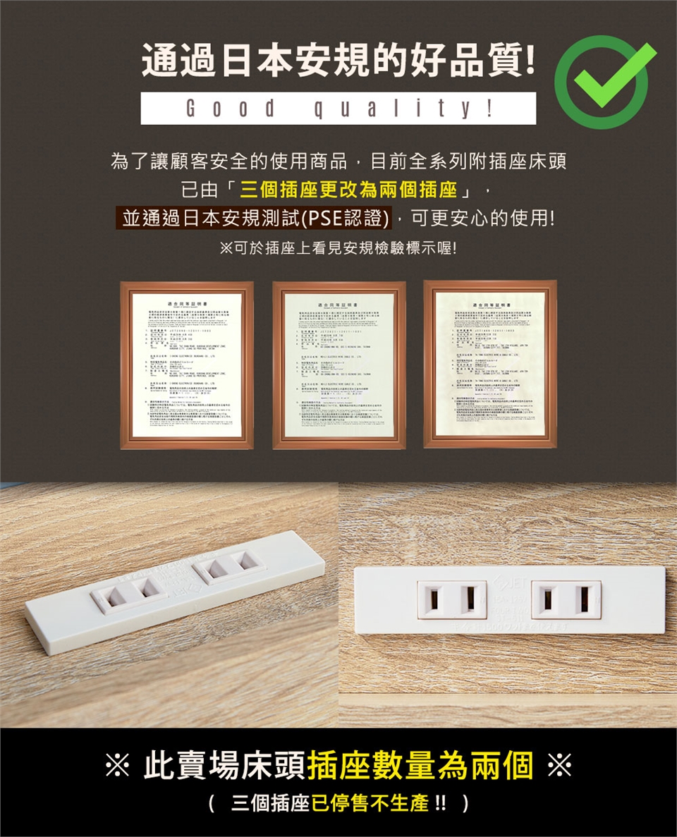 床頭電源插座僅適用於手機充電,請勿使用大電流等電器或其它產品,避免造成電線短路之意外
