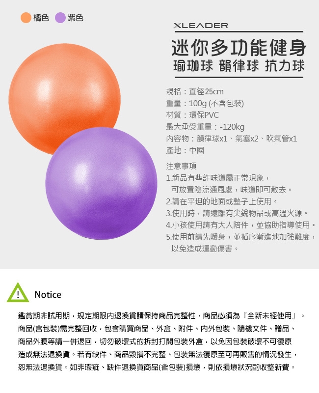 Leader X 迷你多功能健身瑜珈球 韻律球 抗力球 25cm 橘色