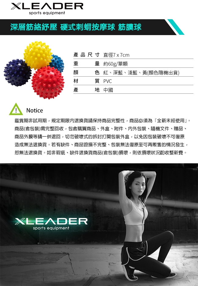 Leader X 深層筋絡紓壓 硬式刺蝟按摩球 筋膜球2入 顏色隨機