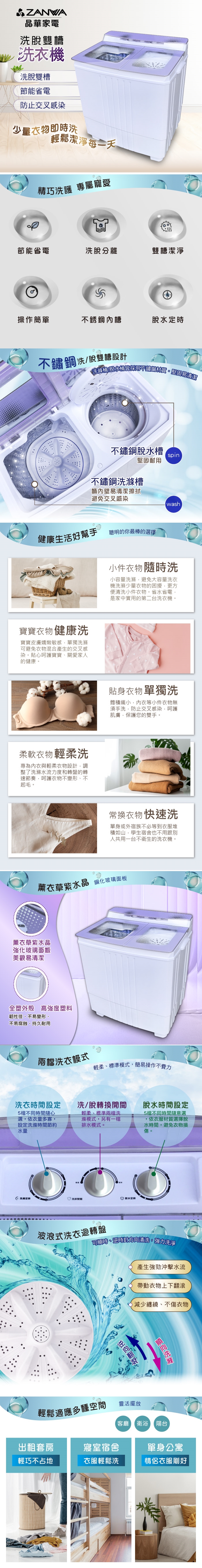 【ZANWA晶華】不銹鋼洗脫雙槽洗衣機