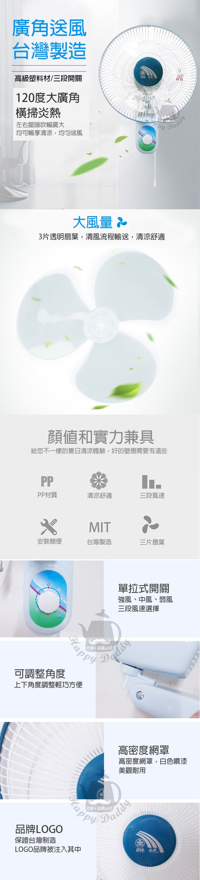 ◎ 14”單拉掛壁扇,拉線式開關