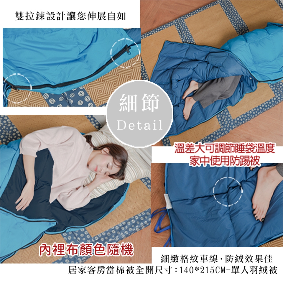 推薦您【凱蕾絲帝】露營抗寒零度我不怕-信封全開式超保暖-純天然羽絨睡袋