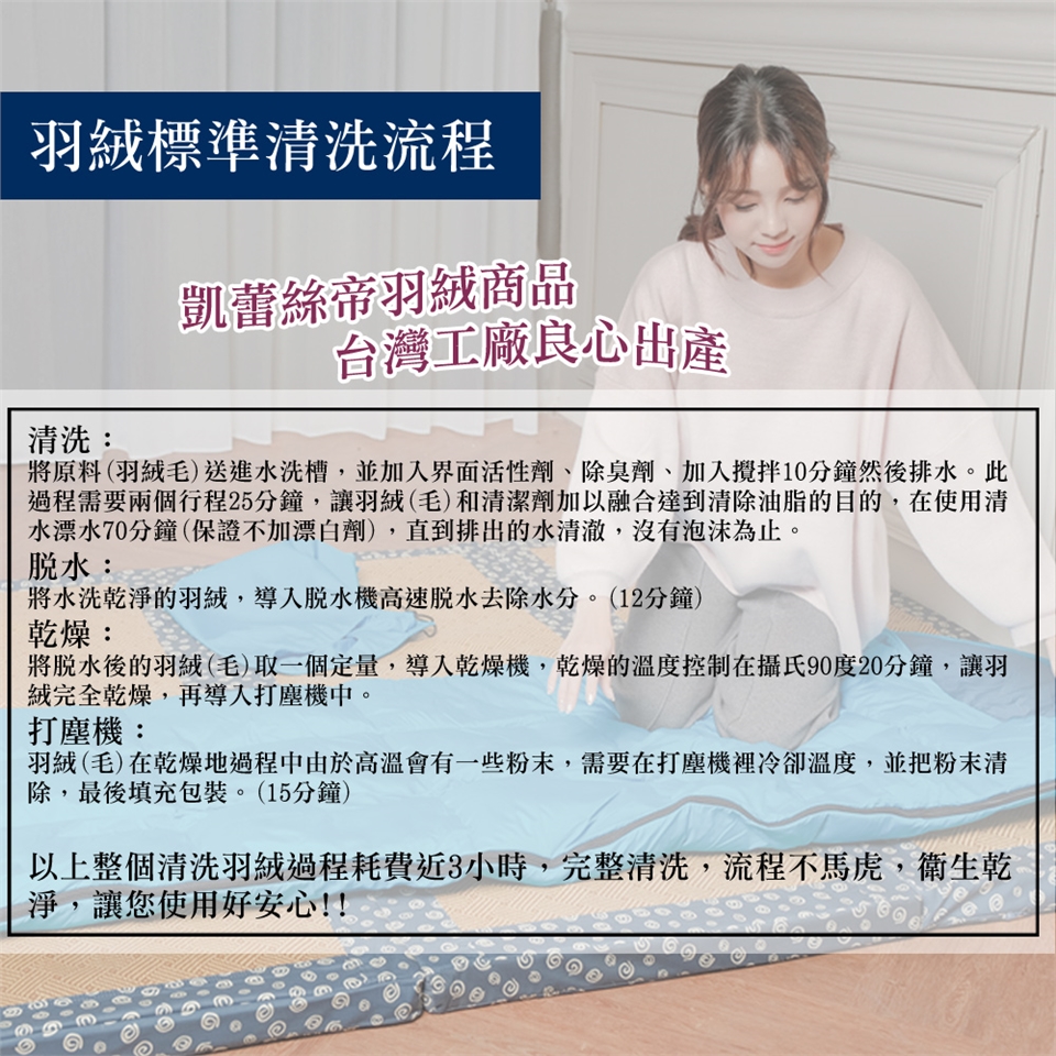 本商品為保留羽絨天然保暖的特性,更經濄12道水洗~直到羽毛絨乾淨為止!不採用化學藥劑去味,故具有原始羽毛味道,為正常狀況!無法接受天然羽毛味道則請勿購買。