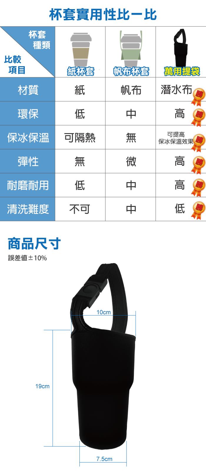- 杯套材質:潛水布料、塑料