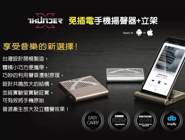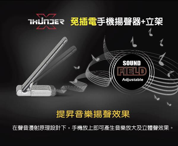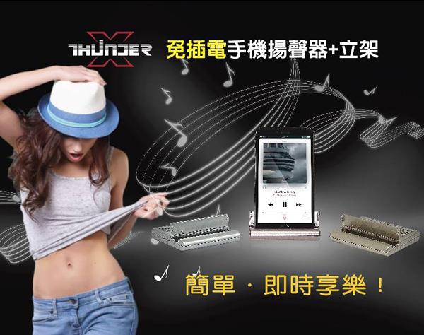 hunder 轟天雷 隨身型 免插電 手機立架揚聲器 - 深灰