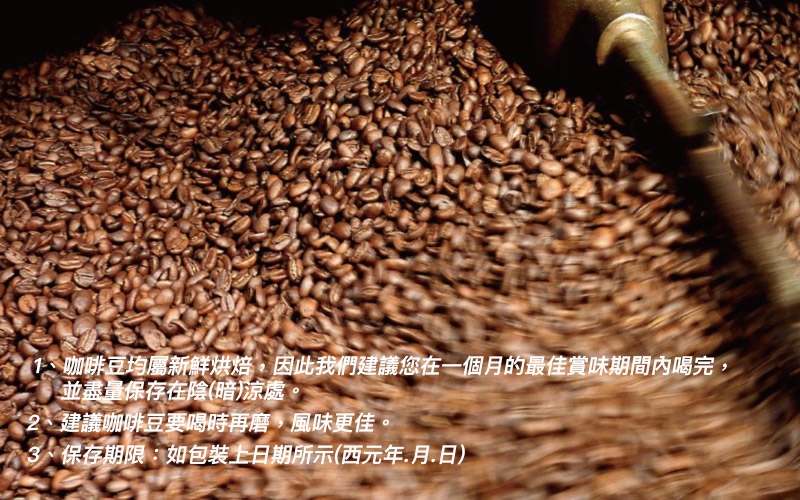 1、咖啡豆均屬新鮮烘焙,因此我們建議您在一個月的最佳賞味期間內喝完,並盡量保存在陰(暗)涼處。