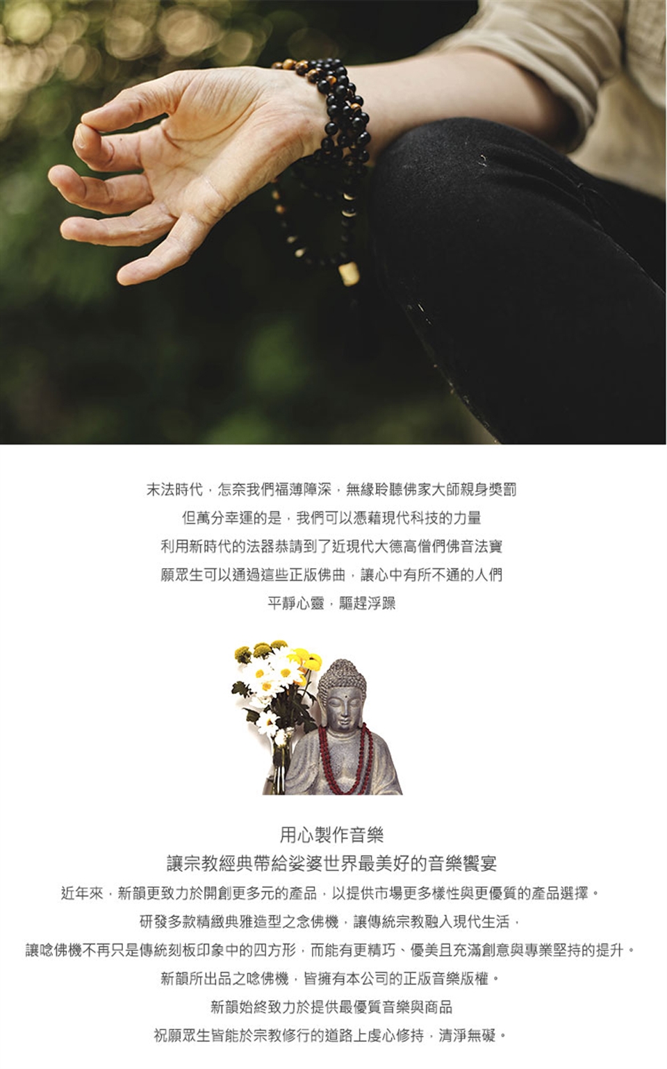 ※新韻傳音販售之全系列念佛機商品,所錄製的音樂,皆有正版音樂授權。
