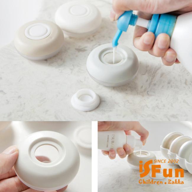 甜甜圈造型輕巧隨身系列,一組共有四個分裝瓶,