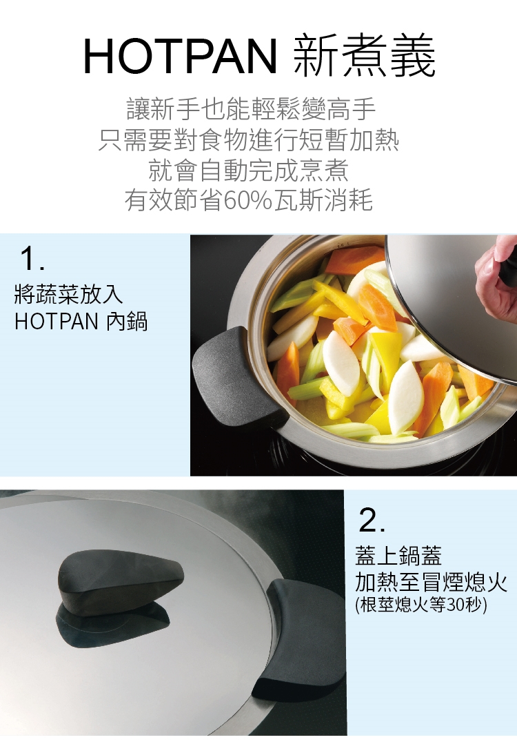 1.HOT PAN休閒鍋是個煎、炒、燙、煮、炸、烤、蒸、鹵、燉、燜、拌沙拉擁有十一大功能