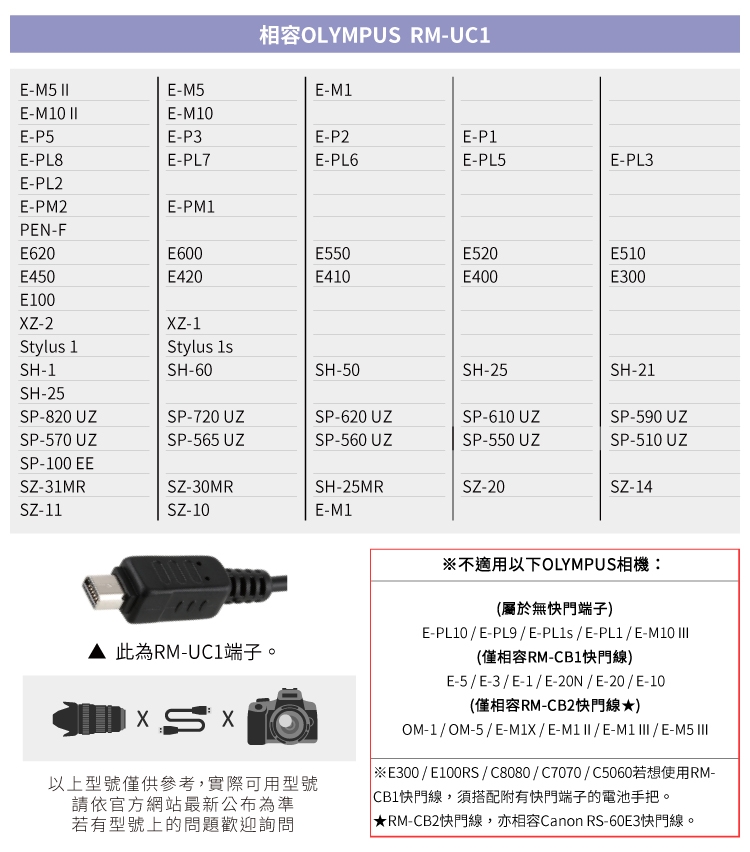 ●【型號】TW-283/UC1 ,相容Olympus原廠的RM-UC1快門線