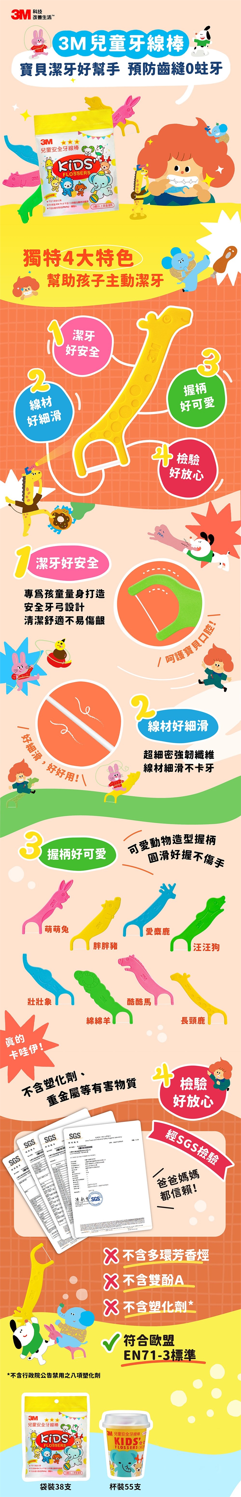 3M 超細滑兒童安全牙線棒-杯裝55支*6入(共330支)