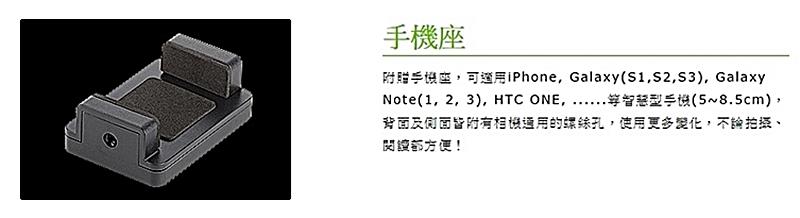 (只要有如下方紅色箭頭所示的1/4"公螺牙,就可以安裝此款手機架)