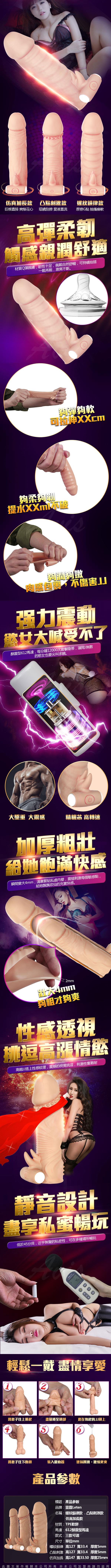 雷霆真肌系列陽具套帶給您混合雙高潮,一邊抽插一邊震動,內部深插每一寸嫩肉外部撩撥陰蒂高潮,讓您久挺硬戰一炮到天亮。通過與陰道的直接阻隔,有效降低龜頭敏感度,變身猛男堅挺久戰搞得她高潮跌起。擁有犀角撩蒂設計一頂一酥爽到癱!犀角頂在陰蒂上結合酥麻的強勁跳蛋高速激顫陰蒂陰唇讓她興奮難耐,嬌聲連連。360°操爽蜜穴多種紋理組合強力磨擦內壁,給她不一樣的濕身快感。仿真加長款加長龜頭,直搗花心激震深層青筋爆現,像硬漢巨根,給她洶湧快感刺激。採用高彈柔韌的觸感親潤材質,佩戴自然舒適~一戰再戰。