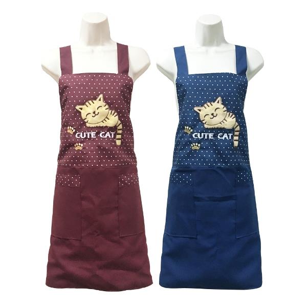 質感電繡貓咪貼布圍裙