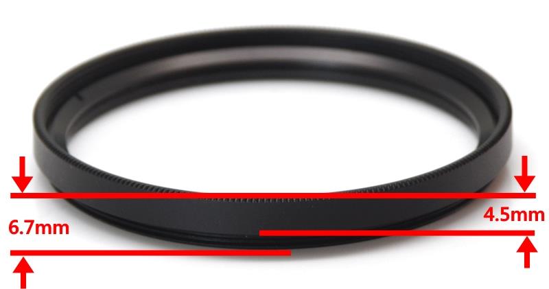 (3)框薄則保護鏡的能力就大大折扣,即然目前數位用的保護鏡只單純保護鏡頭而已,個人傾向在"沒有暗角"的前掉下,選擇薄框或者一般框厚就好了