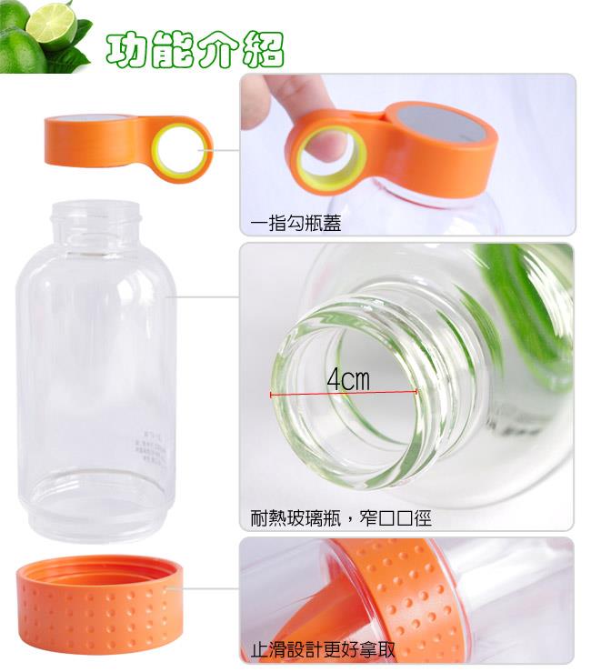 快來使用【玻璃隨手搖搖瓶】650ml設計,瓶身使用玻璃與食品級PP設計讓您使用更安心,不僅可熱茶更可榨檸檬水!不要再每天喝市售的飲料了,不僅傷了荷包又傷身,每天DIY自製飲品不僅省荷包又賺了健康,這麼省錢又健康的事您還猶豫甚麼!快來選購【玻璃隨手瓶】為您省錢賺健康。