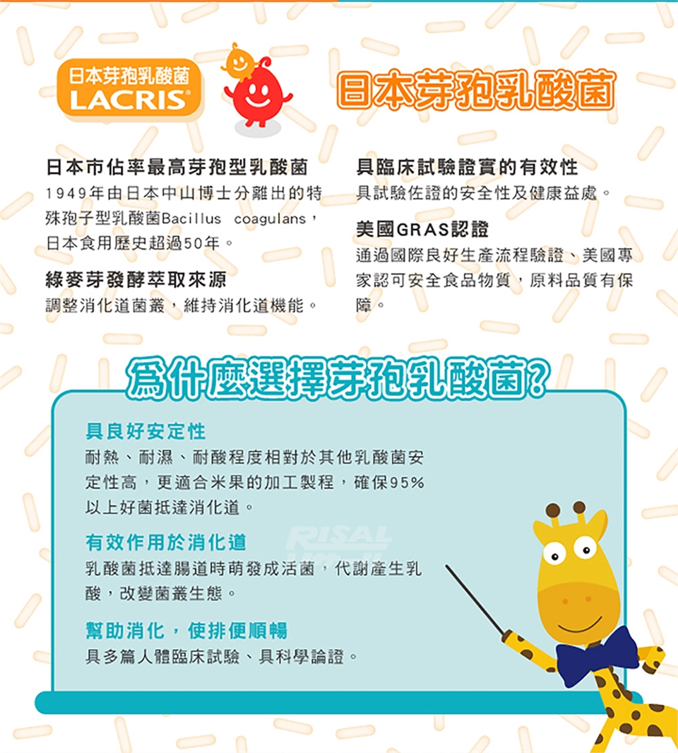 商品詳細介紹 體驗說明 不可體驗 使用方法說明 適用對象:3歲以上之幼兒及兒童 注意事項 幼兒食用時需有大人陪同,並適量補充水分,避免噎嗆情況發生。本產品含有蛋類、大豆類、奶類及其製品。不適合其過敏體質者食用。