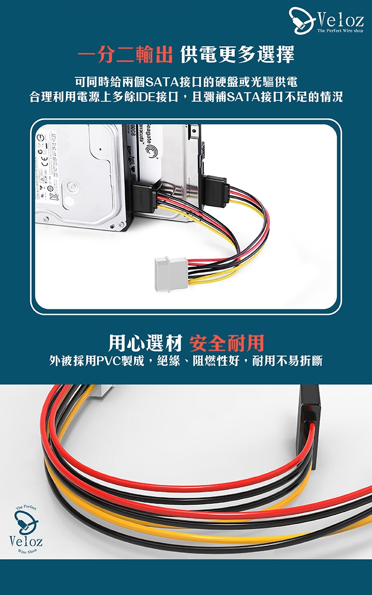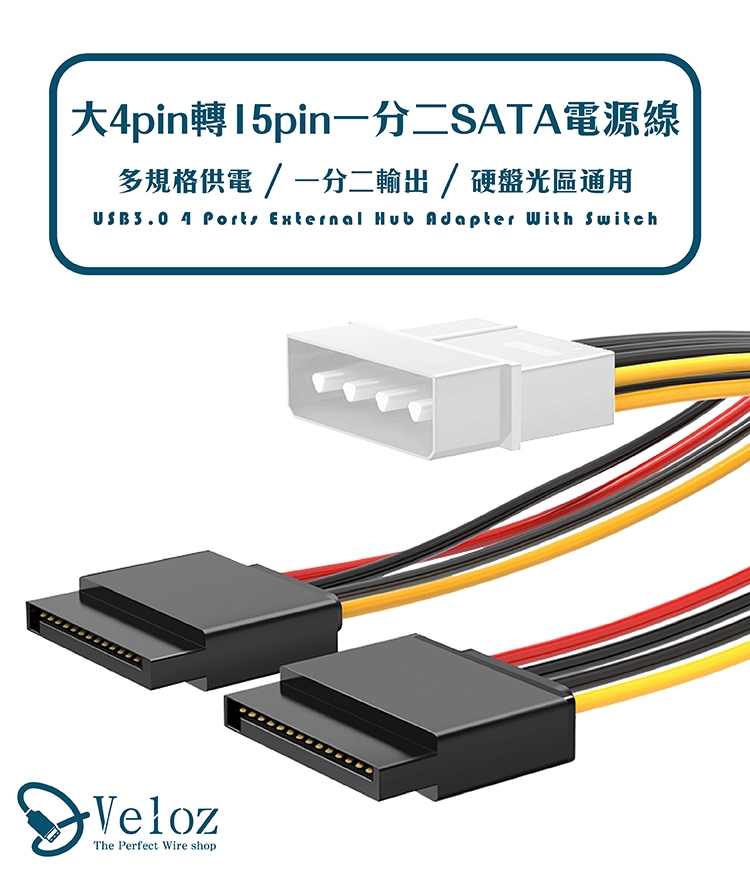 大4pin轉15pin一分二SATA電源線(SA-02)