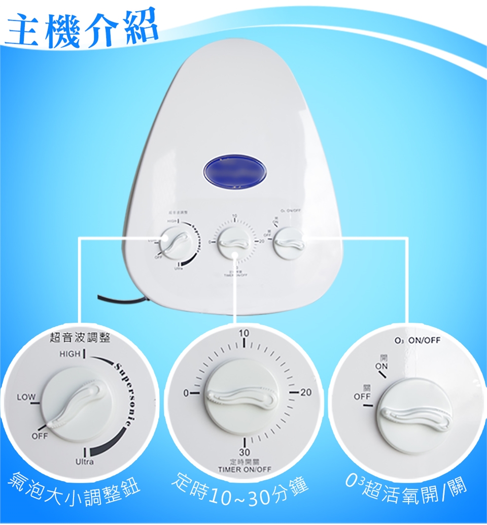 天然活性氧---內建O3活氧產生器,配合磁能波動的左右搖擺效應,提高水中含氧量,深入清潔全身毛孔,幫助皮膚去角質,增進保養品的吸收,達到養顏美容的效果,且能使空氣如森林般清新。