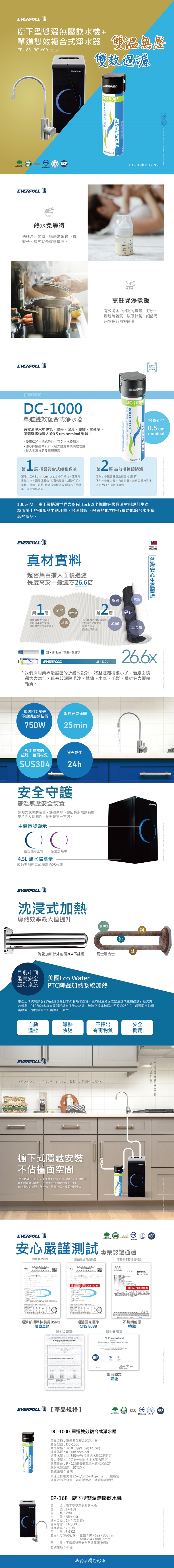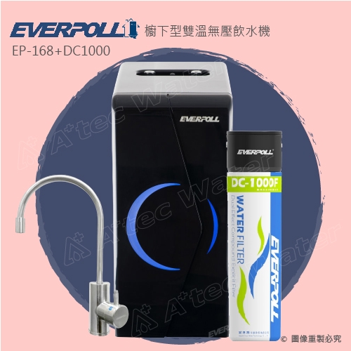 EVERPOLL廚下雙溫無壓飲水機/加熱器+單道雙效複合式淨水器(EP168黑+DC1000)