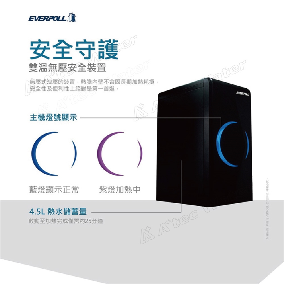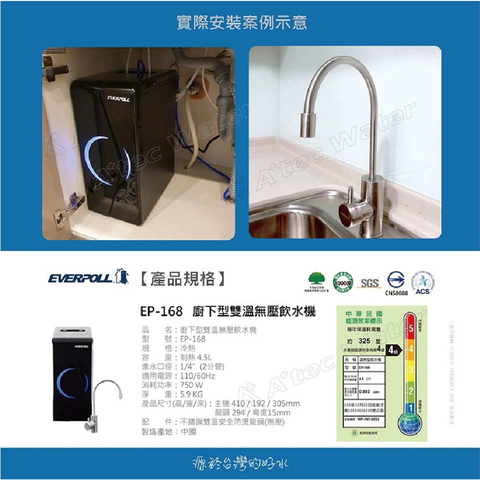 EVERPOLL櫥下/廚下型雙溫無壓飲水機(EP-168/EP168)(時尚黑)