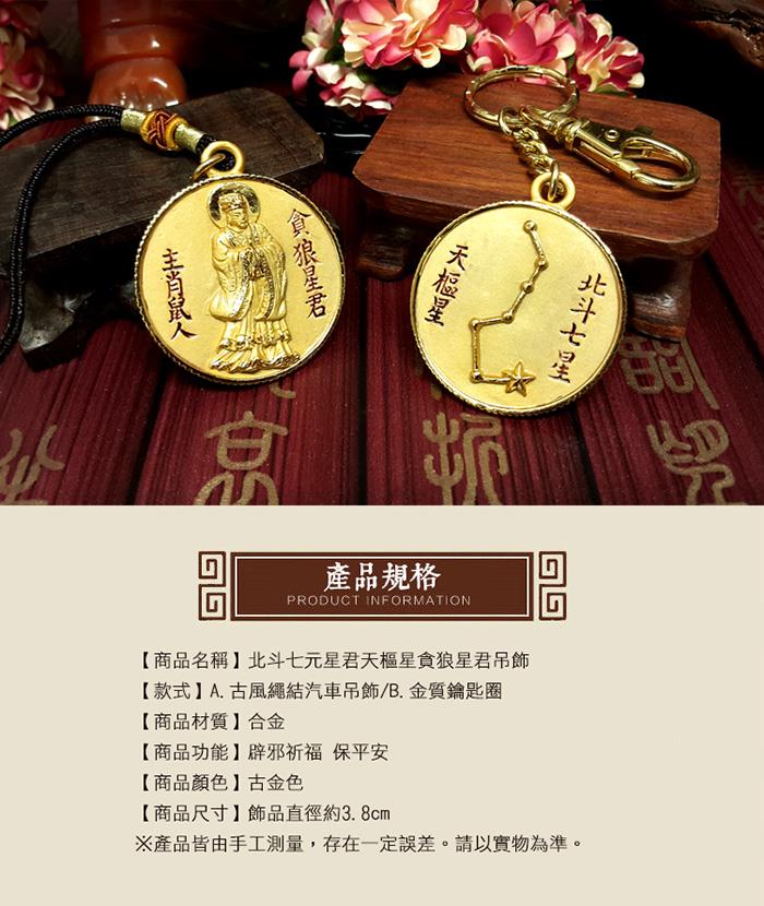 北斗七元星君天樞星貪狼星君吊飾
