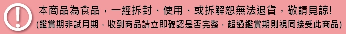 ※ 本商品為食品,一經拆封、使用、或拆解恕無法退貨,敬請見諒。