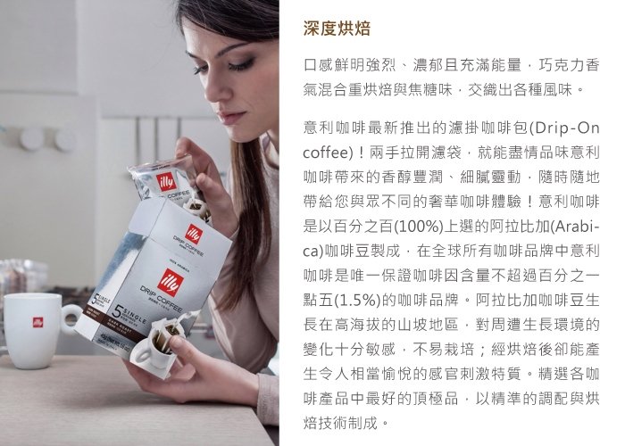 商品組合:【illy】意利深焙咖啡掛耳(50入/袋)