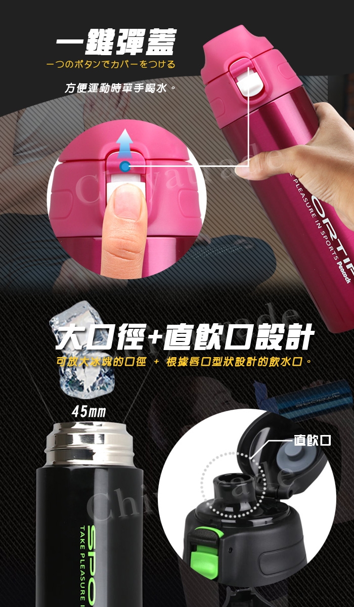 單手解鎖,一鍵即開,直飲口設計,根據唇口型狀設計,方便運動時單手喝水。