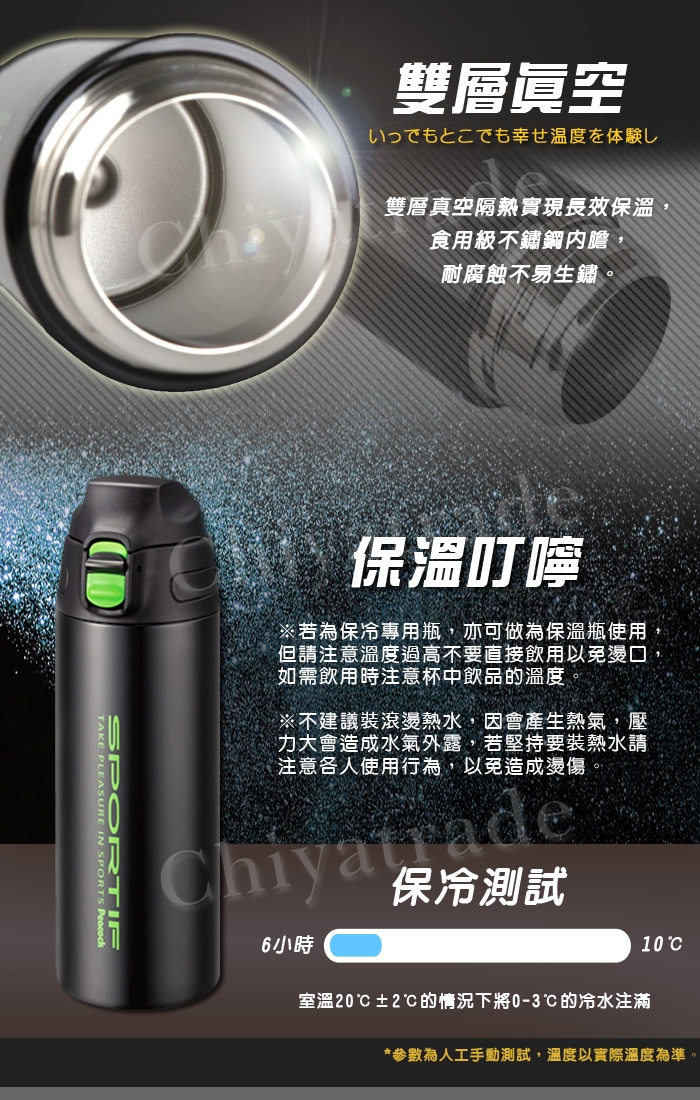 ※若為保冷專用瓶,不建議裝滾燙熱水,因會產生熱氣,壓力大會造成水氣外露,若堅持要裝熱水請注意個人使用行為,以免造成燙傷。