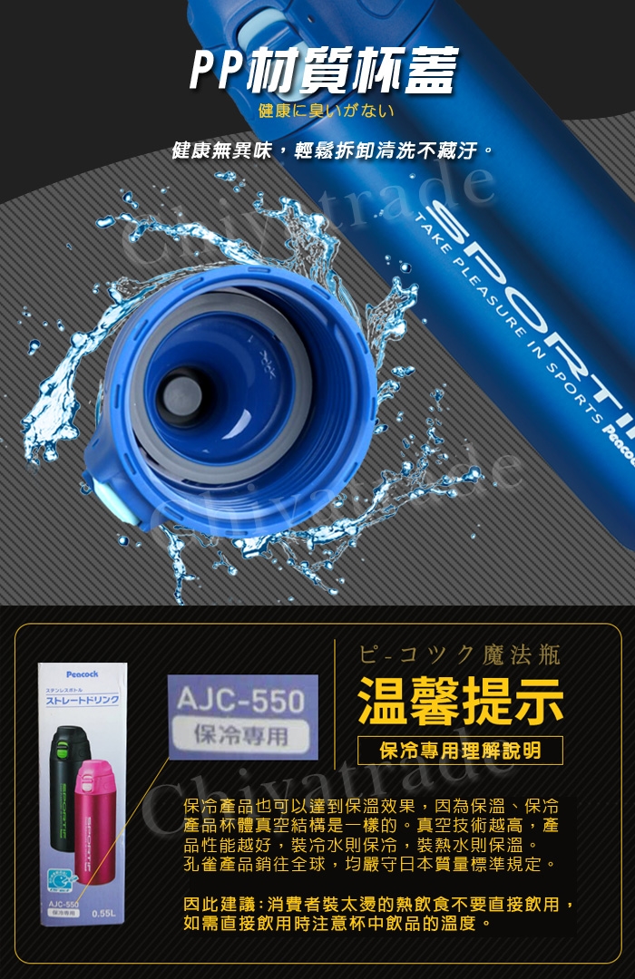 Peacock運動保溫杯0.55L輕盈挺你!