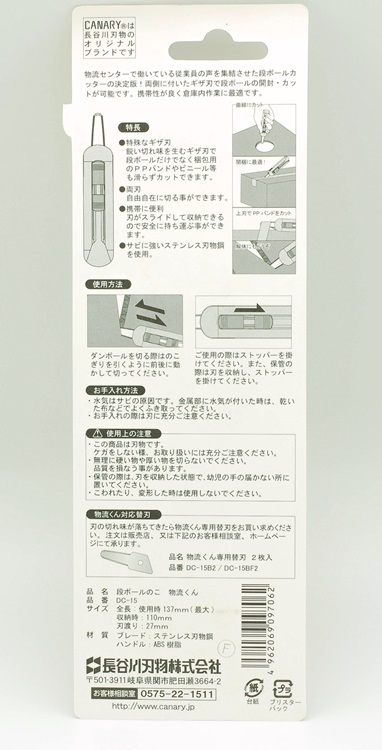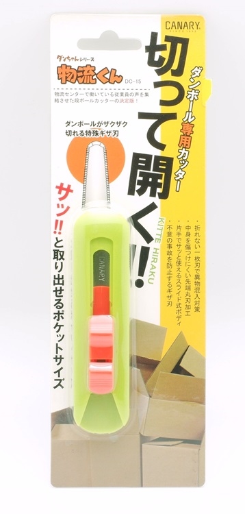 ●【品名】日本長谷川刃物CANARY開箱刀拆箱刀DC-15美工刀(刀片鎖定;鋸齒+圓形刀頭&雙刃)倉庫收貨刀物流刀 適切割束帶封膜紙板製作貓屋