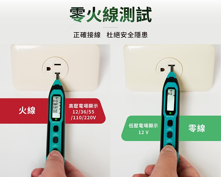 ○火線:高壓電場顯示 12 / 36 / 55 / 110 / 220 V。