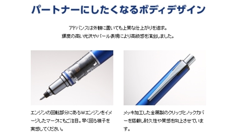 三菱鉛筆一直致力於研發更好的文具與Kuru toga 研發出ADVANCE自動迴轉裝置讓使用者有更舒適的書寫感,選擇最佳的寫字夥伴就找三菱鉛筆~