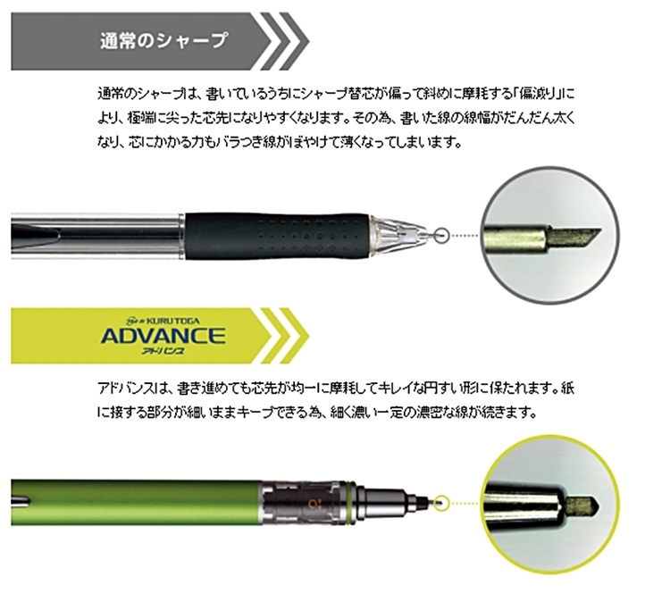 ●Kuru toga ADVANCE 0.5mm自動鉛筆M5-559三大特點