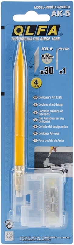 ●隨附刀片為KB-5/30B,內含30枚30度刀片超划算,刀片厚度0.38mm,另有雕刻針一支。