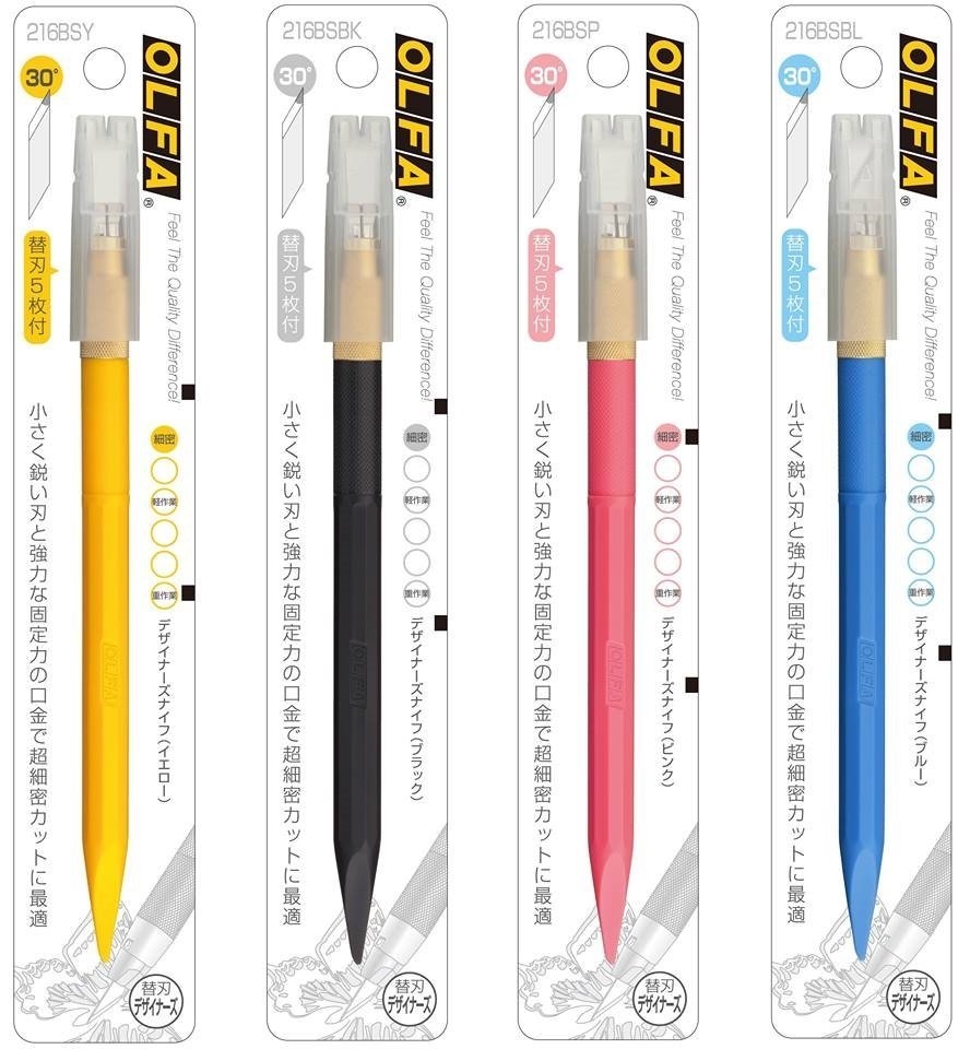 ●【品名】日本OLFA專業筆刀設計筆刀216BS雕刻筆刀(彩色款;4mm細工30度刀片)